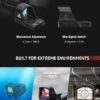 Dzięki żywotności baterii wynoszącej 50 000 godzin, kolimator może działać przez długi czas bez potrzeby częstej wymiany zasilania. Oburęczny cyfrowy przełącznik kontroli jasności, umieszczony po obu stronach urządzenia, umożliwia intuicyjne i wygodne dostosowanie ustawień.