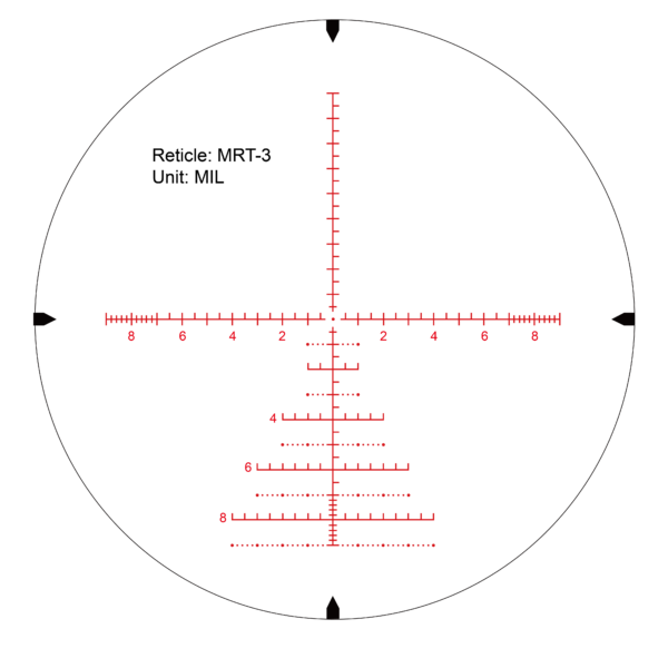 REDWIN luneta myśliwska Tactical Hash Mil 6 stopni podświetlenia, regulacja Zero Lock Hold .338. Taktyczna siatka celownicza MRT-3 FFP Mil Hash została zaprojektowana przez profesjonalnych strzelców. Siatka krzyżowa o długości 18 mil z pływającymi oczkami pocisków 0,1 mil, każda mała siatka ma 0,5 mil, najmniejsza siatka ma 0,25 mil. Taktyczny obszar szybkiego pomiaru w kształcie choinki 2MIL – 8MIL za pomocą mil dot i mil hash umożliwia szybkie oszacowanie punktu uderzenia w różnych warunkach.