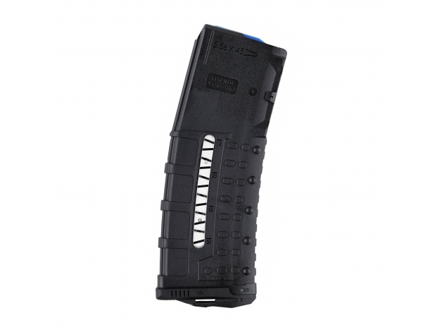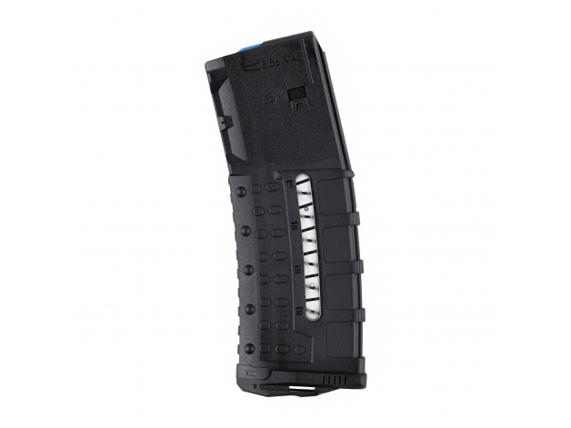 Magazynek ma kontrastowy popychacz o niskim współczynniku tarcia oraz sprężynę ze stali nierdzewnej, która nie odkształca się nawet przy dłuższym obciążeniu. Popychacz ma czterokierunkowe zabezpieczenie przed nadmiernym przechyleniem, co ogranicza ryzyko zacięcia podczas wprowadzania naboju do komory. Obustronne boczne wzierniki ułatwia inspekcję stanu broni.