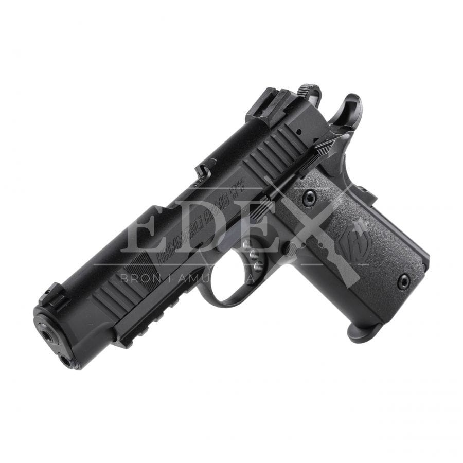 Pistolet Hammerli Forge H1 to perfekcyjna opcja zarówno dla osób nastawionych na niezobowiązującą rekreację, jak i szukających alternatywnych sposobów treningu strzeleckiego. Dzięki zasilaniu amunicją bocznego zapłonu pozwoli nam na korzystanie z kilkukrotnie tańszej niż oryginalne .45 ACP amunicji, a co za tym idzie zdecydowanie dłuższy i bardziej intensywny trening strzelecki. Niska masa oraz umiarkowany odrzut sprawiają, że pistolet doskonale sprawdzi się podczas oswajania początkujących strzelców z bronią, pozwalając na łatwą obsługę nawet bardzo młodym użytkownikom. Wykorzystanie wysokiej jakości materiałów oraz wysoce wytrzymałej powłoki Cerakote.