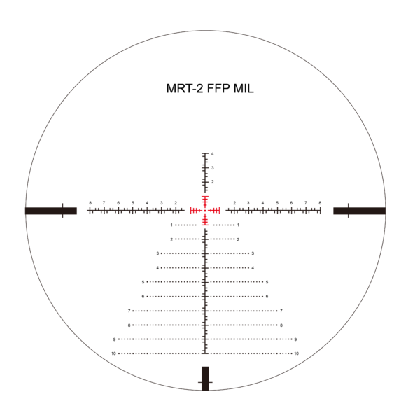 Wieżyczki o wysokim profilu pozwalają na regulację o wartości 1/10 Mil (60 kliknięć na obrót). Umożliwia to bardzo dokładne korekty celowania. Siatka celownicza Tactical MRT-2 Hash w pierwszym planie gwarantuje szybkie i precyzyjne namierzanie celu w różnych warunkach. Wbudowany system podświetlenia oferuje 6 poziomów czerwonego oświetleniaSzczelność na poziomie IPX7 oraz odporność na odrzut przy strzelaniu amunicją kalibru .308 i 0,338 Lapua Magnum świadczą o trwałość i solidności konstrukcji. Odległość od oka wynosi 100 mm – 95 mm, co zapewnia komfortowe i bezpieczne użytkowanie.